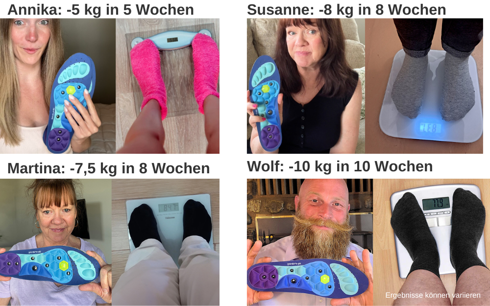 Disclaimer: Wenn Sie schwanger sind, stillen, Medikamente einnehmen oder unter ärztlicher Aufsicht stehen, konsultieren Sie bitte vor der Anwendung einen Arzt oder medizinisches Fachpersonal. Diese Produkte sind nicht zur Diagnose, Behandlung, Heilung oder Vorbeugung von Krankheiten bestimmt. Alle hier vorgestellten Informationen sind nicht als Ersatz oder Alternative zu Informationen von Ärzten oder Therapeuten gedacht. Bitte konsultieren Sie Ihren Arzt über mögliche Wechselwirkungen oder andere mögliche Komplikationen, bevor Sie ein Produkt verwenden. Die Gewichtsabnahme erfolgt im Rahmen einer gesunden, kalorienreduzierten Ernährung und eines Sportprogramms, das zusätzlich zum Tragen der Sohlen Bestandteil des Abnehm-Vorhabens eingehalten werden muss. Das Angebot ist nicht dazu bestimmt, Krankheiten zu diagnostizieren, zu behandeln, zu heilen oder zu verhindern; Das Angebot stellt keine medizinische Beratung dar. Das Angebot ist kein Ersatz für Medikamente oder andere Behandlungen, die von einem Arzt oder Gesundheitsdienstleister verschrieben werden. Die Nutzer sollten einen Arzt konsultieren, bevor sie eine Behandlung beginnen.
