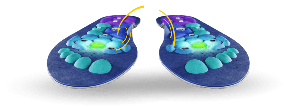 4. Dauerhafte Stimulation durch Akupressur-Module: Unterschiedlich geformte Druckpunkte wirken wie eine Reflexzonenmassage – und aktivieren Zonen, die den Energieumsatz im Körper unterstützen. Das Ergebnis: mehr Energie und spürbare Aktivierung im Alltag.
